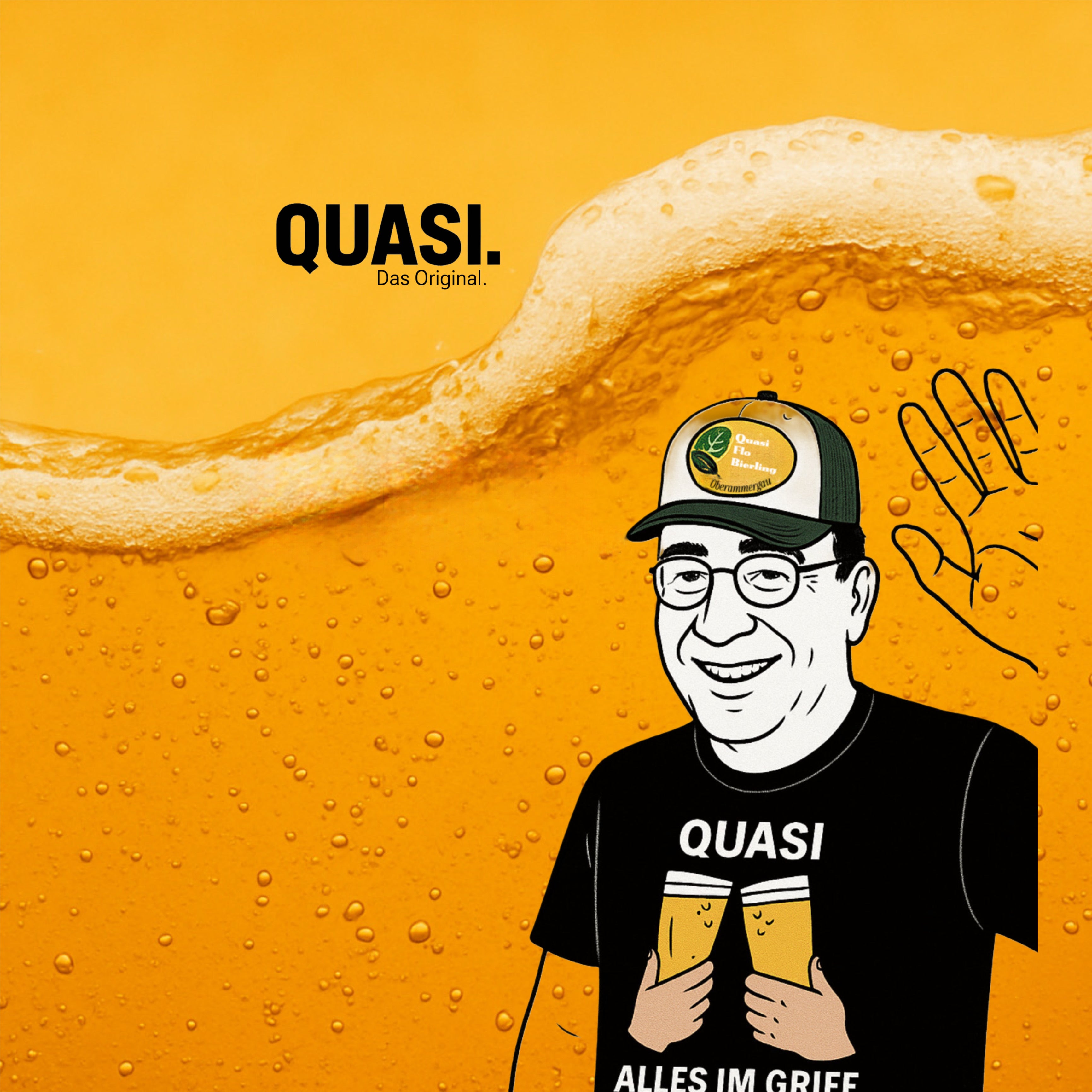 Merch für alle, die wissen: Orangensaft schmeckt am besten von Aldi und „QUASI“ gehört in jeden Satz.